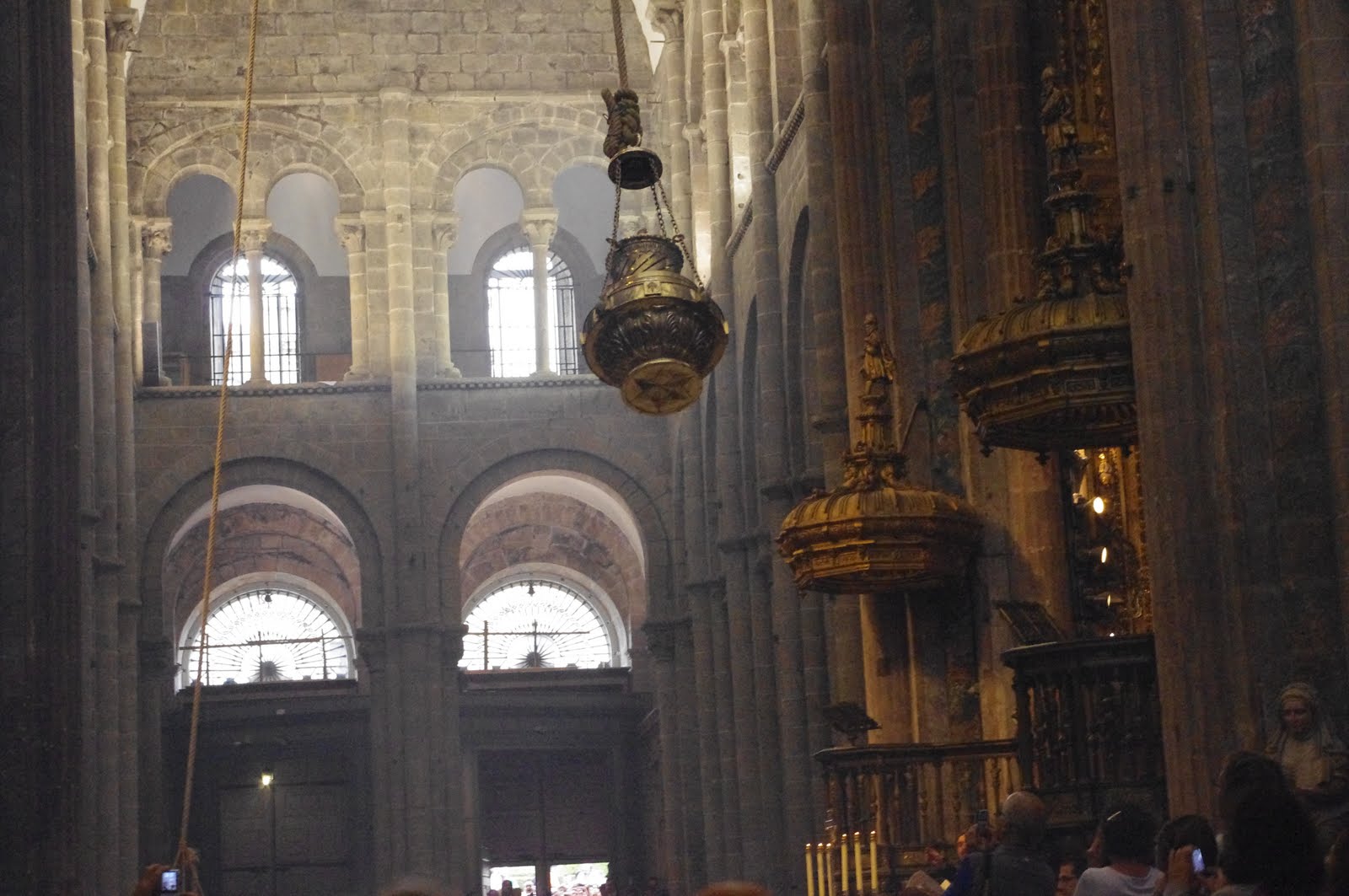The mass concluded with the swinging of the botafumiero, the largest incense burner in Christendom. Eight men must pull the ropes to make it swing the full length of the transept.